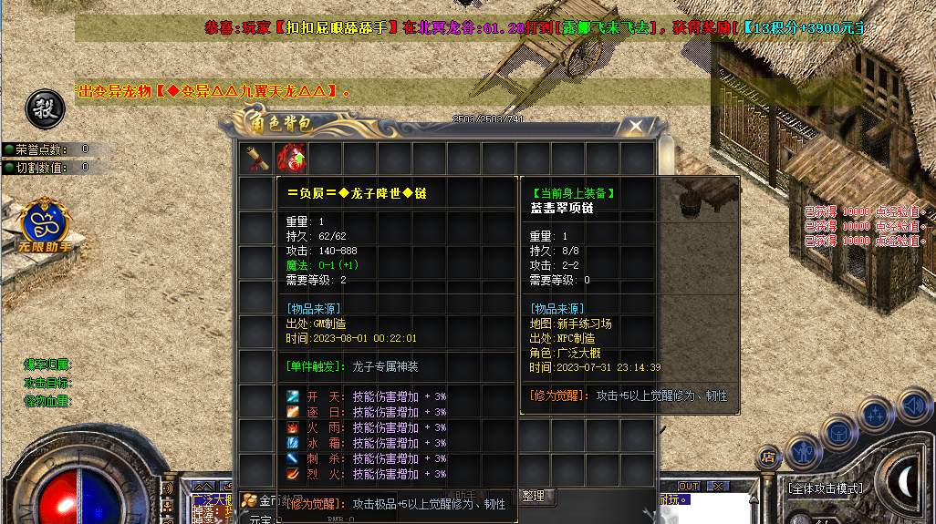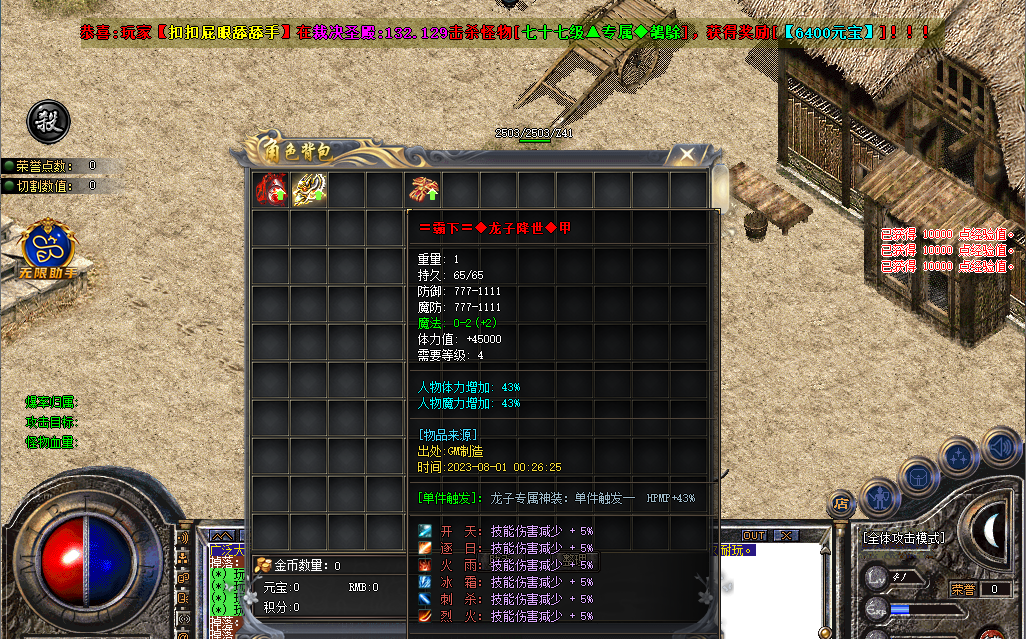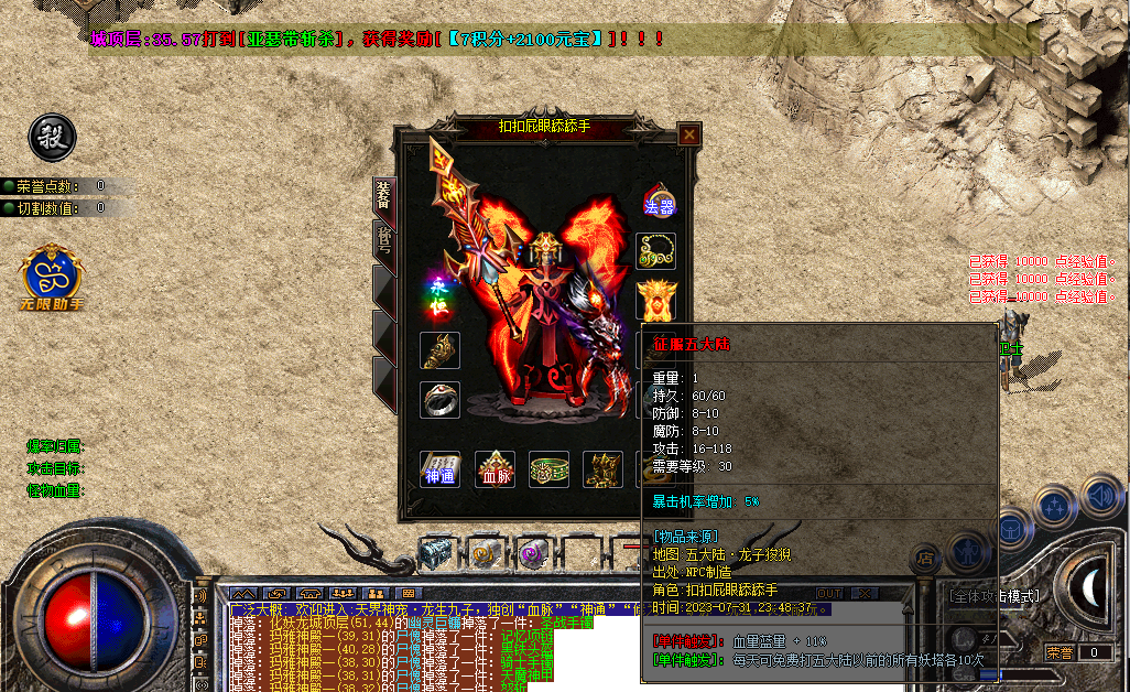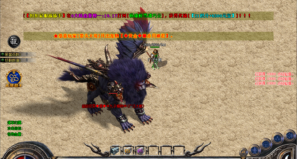 ◇◇◇◇◇白嫖①:最好上2个号,挂机打积分、元宝、经验宝箱,这样可以第一时间合成勋章,才可以下大陆,守着个人BOSS打早点开出好宠物◇◇◇◇◇