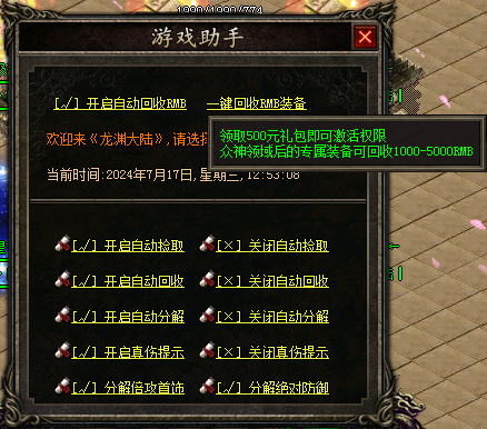 全新增加RMB自动回收!解放双手!增加2个全新大陆!增加8套终极武器衣服!
