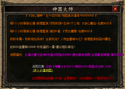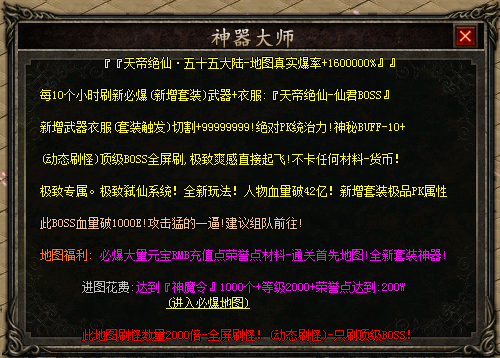 增加10倍刷怪!无限爆率!全屏切割(无限爽)!新增天命神器系统!PK无限爽!