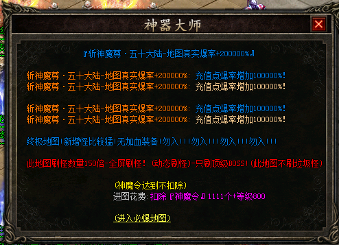 全新玩法!增加3个必爆神魔令地图!无需充值-必爆充值点,领取所有礼包!